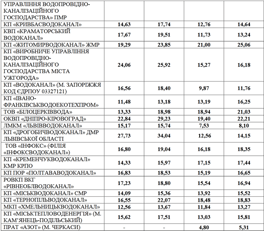 Зокрема, йдеться про послуги централізованого водопостачання та водовідведення.