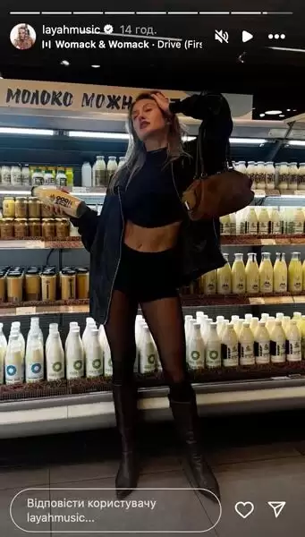 В одному з кадрів співачка позує в супермаркеті біля полиць із молочними продуктами.