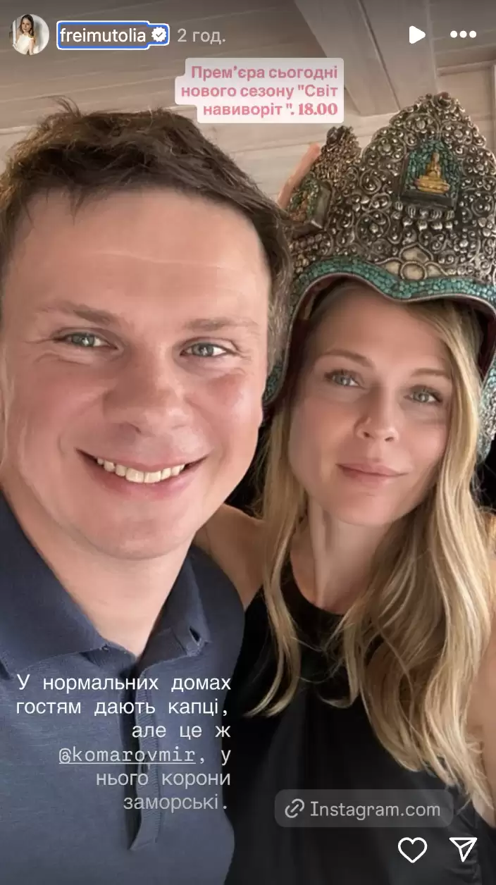 Коли саме вона гостювала у Комарова та зробила це селфі - невідомо. Але також Ольга написала про новий сезон шоу "Світ навиворіт". Тому є ймовірність, що фото могло бути зроблене під час зустрічі з нагоди зйомок. Або ж таким кадром Фреймут вирішила підтримати колегу додатковим "анонсом".