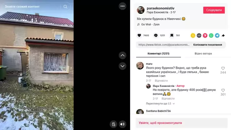 Під роликом, відповідаючи на коментарі глядачів, українці зауважили, що вартість нерухомості в сільській місцевості Саксонія-Ангальт складає 40 тисяч євро (майже два мільйони гривень). Будинок розташований десь у сільській місцевості.