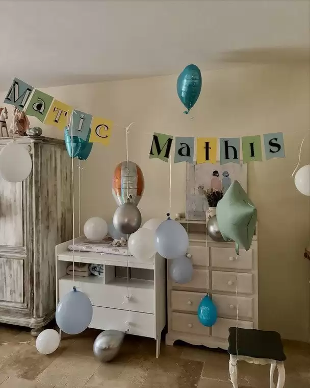 У результаті щойно вона переступила поріг квартири й її зустріли кульки й святкові прапорці. До речі, на одній з декорацій виднілося й ім’я первістка зірки. Хлопчика назвали Матісом.