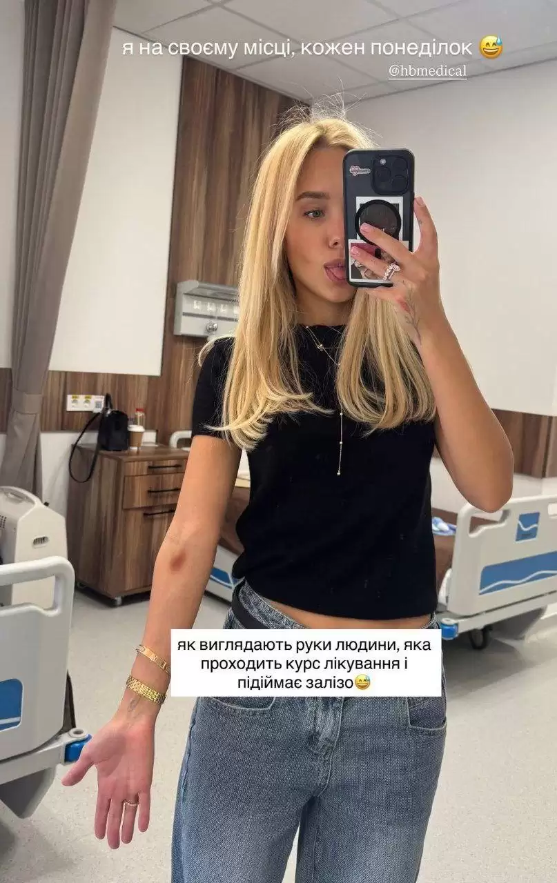 Хоча Даша не розкрила свій діагноз, вона зазначила, що проходить тривалий курс лікування для підвищення заліза в крові. Ймовірно, блогерці вводять розчин заліза внутрішньовенно за допомогою крапельниць. Саме тому на її руках з'явилися синці.
