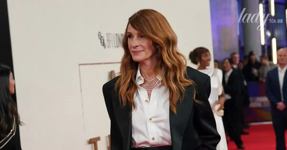 U-News » Шоу-біз » У білій сорочці та фраку: стильна Джулія Робертс вийшла на червону доріжку в Лондоні