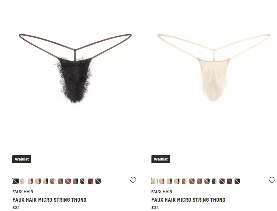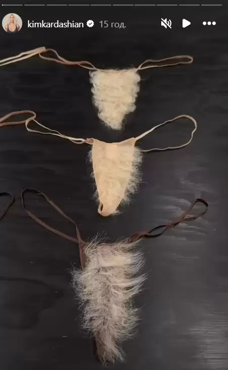 У своєму Instagram Кім з радістю оголосила про випуск мікрострінгів її бренду SKIMS зі штучним лобковим волоссям. Є навіть варіанти: пряме чи кучеряве волосся, а також кілька різних відтінків.