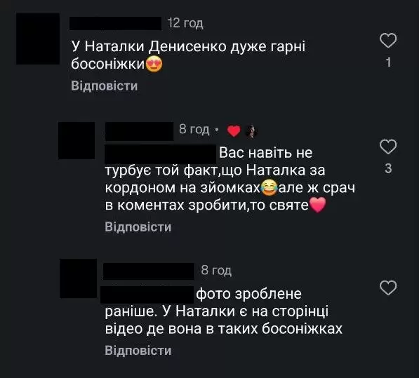 Усе б нічого, але між ногами чоловіка "загубилася" струнка жіночка ніжка у білих босоніжках. Користувачі мережі одразу припустили, що власницею ноги є Наталка Денисенко. Як аргумент — на сторінці акторки в інстаграмі є відео, в якому вона стоїть у такому ж взутті.