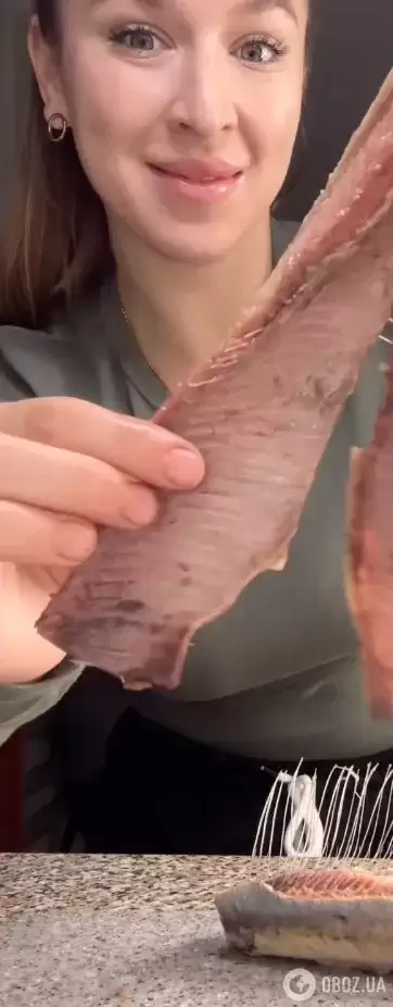 Кулінарка поділилася в Instagram кулінарним лайфхаком, завдяки якому ви всього одним рухом зможете відокремити всі кістки з оселедця.
