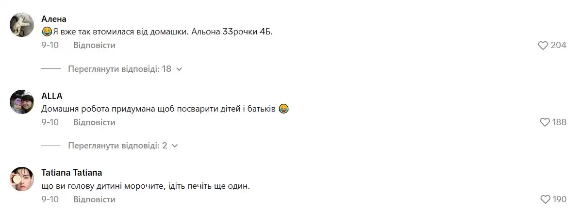 У коментарях користувачі пишуть, домашні завдання придумали для того, щоб посварити дітей з батьками, і взагалі, нехай мама йде і пече ще один круасан, щоб дитині було легше поділити.