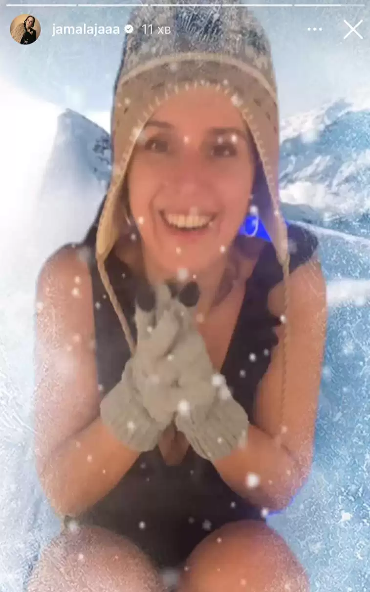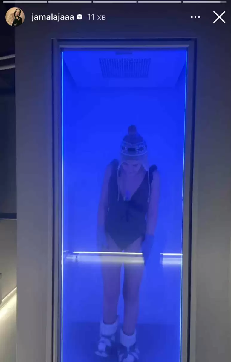 «Це кріокамера. Вперше у житті хочу спробувати. -85 градусів, друзі. Страшно. Добре, ескімосам привіт. Дуже холодно», — сказала Джамала.