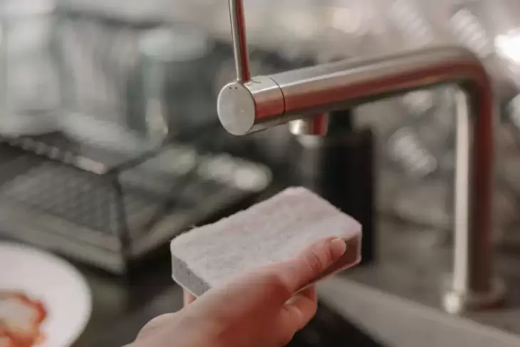 Перш ніж розпочати, забезпечте собі необхідні матеріали. Посипте сухою гірчицею вашу губку для миття посуду. Зверніть увагу, що використання гірчиці насухо забезпечить найкращий результат.