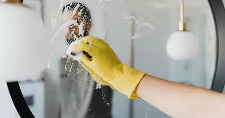 Якщо дзеркало має плями від жорсткої води, ефективно допоможе інший домашній засіб — паста з харчової соди та води. Для її приготування потрібно змішати інгредієнти у рівних пропорціях до консистенції зубної пасти, нанести суміш на забруднену ділянку, дати їй висохнути, а потім стерти вологою серветкою. За потреби поверхню можна протерти ще однією сухою тканиною.