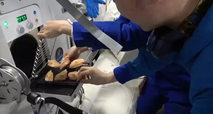 Астронавти на борту китайської космічної станції "Тяньгун" уперше в умовах мікрогравітації приготували курячі крильця і стейки.