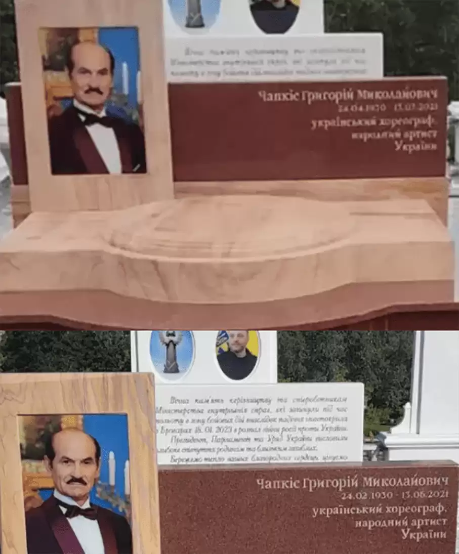 Врешті лише тепер відвідувачі місця останнього притулку Григорія Чапкіса можуть побачити на граніті сліди від шліфування та виправлені дати народження й смерті знаменитості. Тож причин сварити останню дружину та дітей легендарного чоловіка в хейтерів, здається, більше не буде приводу.