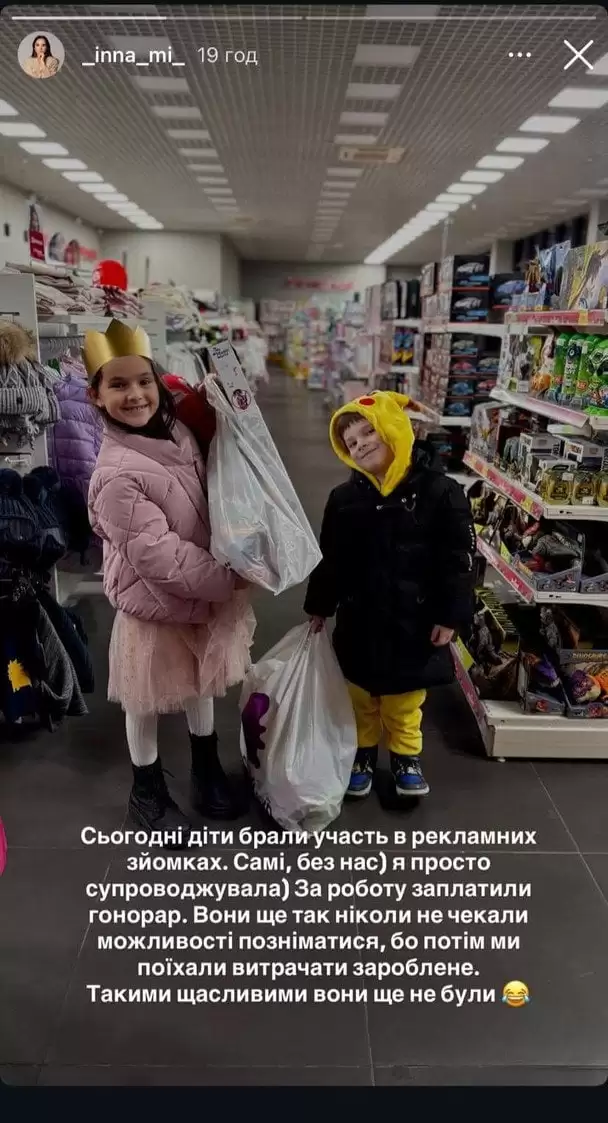 "Діти брали участь в рекламних зніманнях. Самі, без нас. Я просто супроводжувала. За роботу заплатили гонорар.
