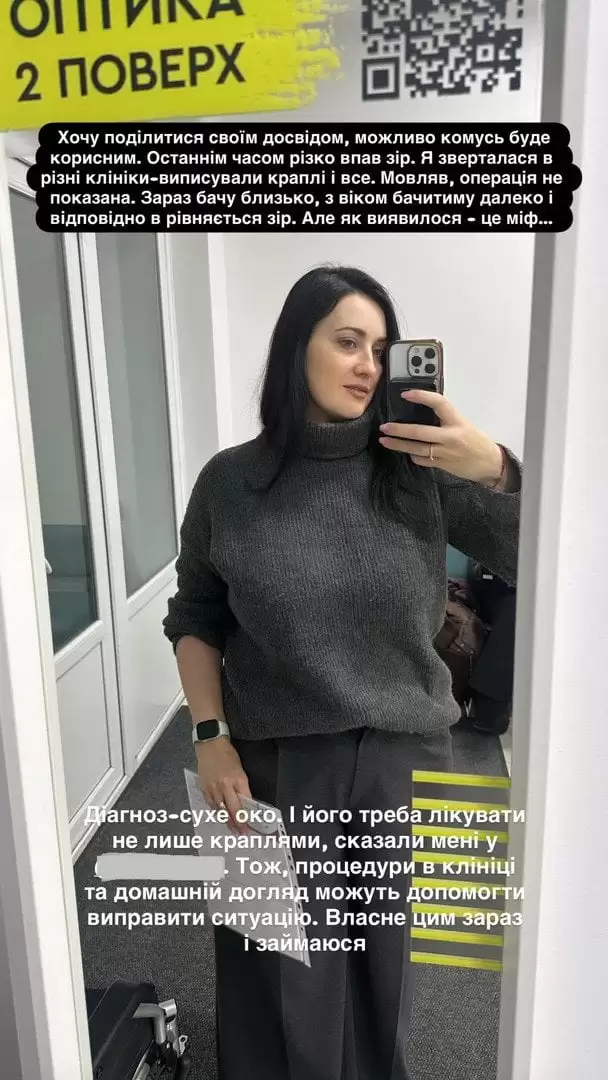 Зараз бачу близько, з віком бачитиму далеко і відповідно вирівняється зір. Але, як виявилося, це міф...", - поділилась ведуча.