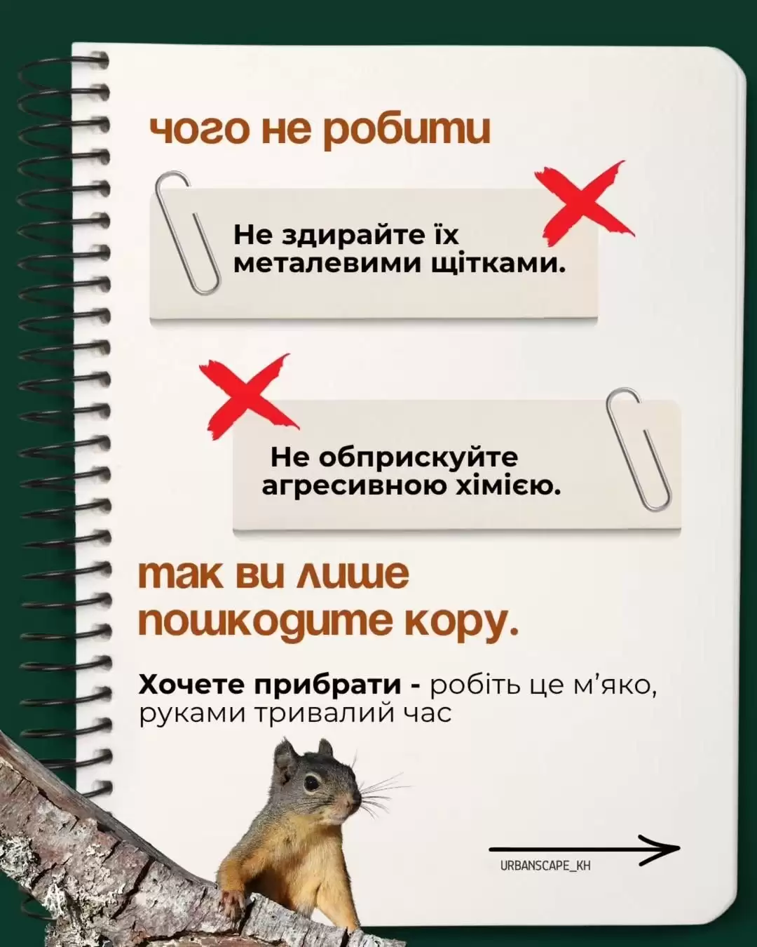 "Так ви лише пошкодите кору. Бажаєте прибрати – робіть це м'яко", – порадила експертка.