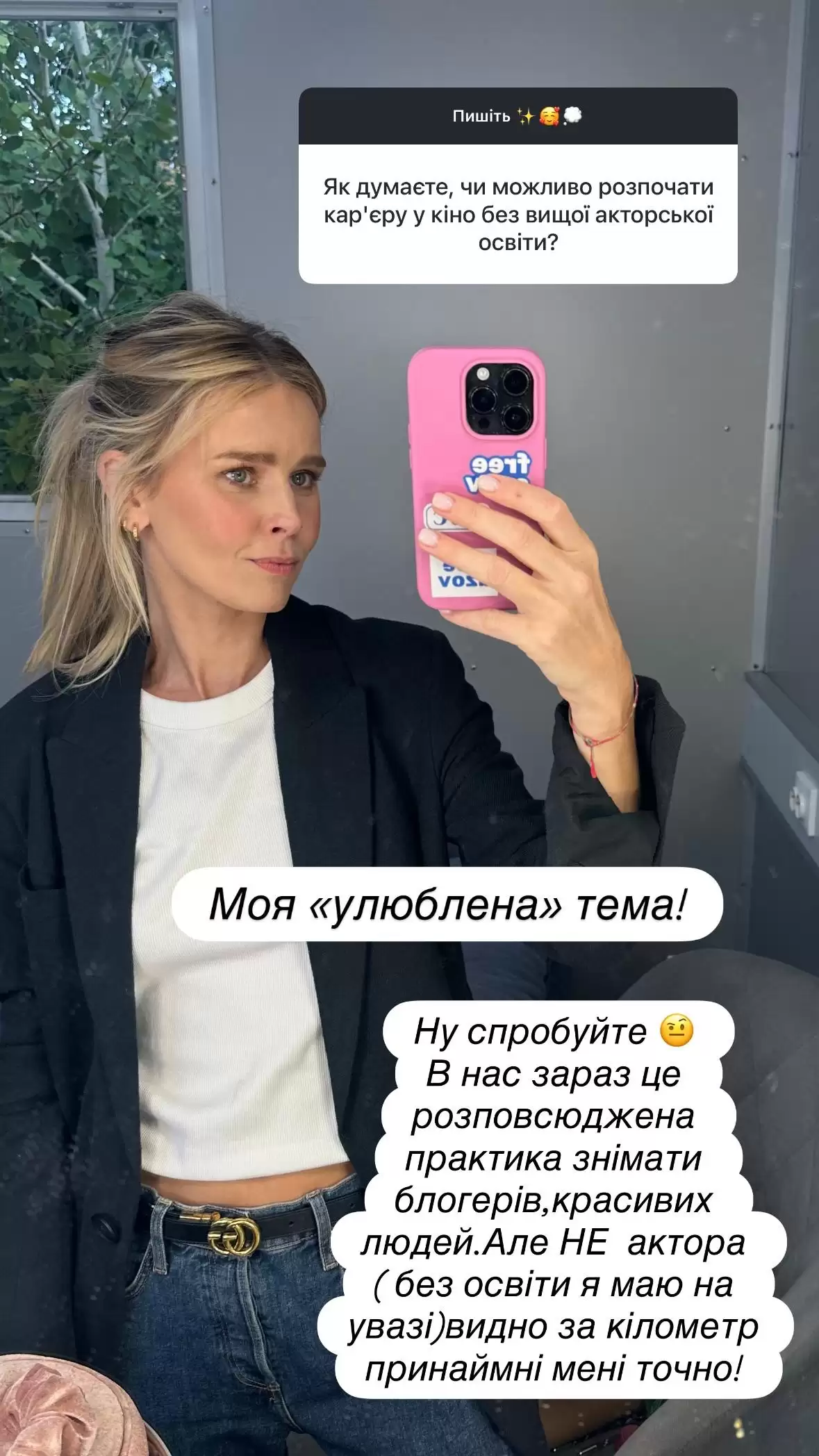 У Instagram артистку запитали, чи можна розпочати кар'єру в кіно без вищої освіти. Вона відповіла так: