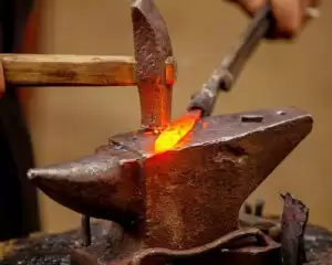 Цей фразеологізм походить з "мовлення ковалів", які спеціально розігрівають шматок заліза в вогні, щоб воно стало м'якшим, і поки воно не охололо, б'ють по ньому молотом, надаючи потрібну форму.