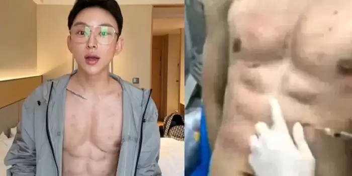 Китайський блогер вколов собі гіалуровану кислоту у живіт і таким чином створив штучний прес. Рідина, вколена у живіт, сформувала шість кубиків пресу у чоловіка.