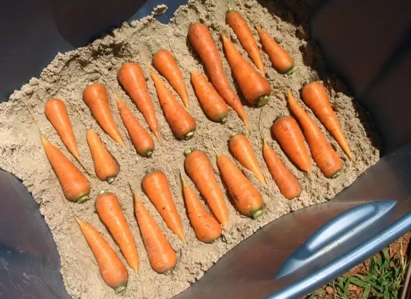 Найпопулярнішим вважається спосіб зберігання овочів у ящику з піском. Кожен овоч при цьому укладають окремо від іншого, пересипаючи новий шар піском до 2 см.