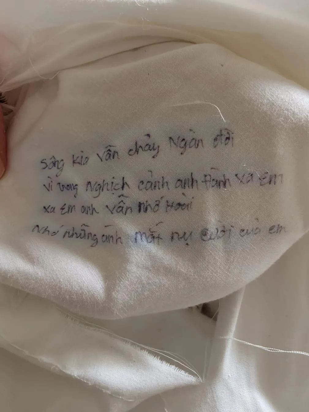 Усередині подушки містився дивний напис в'єтнамською мовою.