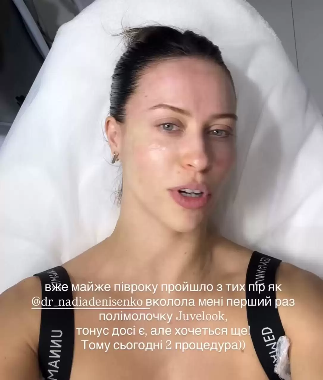 Вікторія показалася прямо з косметологічного кабінету, а також написала ті процедури, які регулярно робить. Це ін'єкції ботоксу, біостимуляторів, що містять полімолочну і гіалуронову кислоту, та полінуклеотидів. А також – мікроголковий RF-ліфтинг у поєднанні з радіочастотною терапією.
