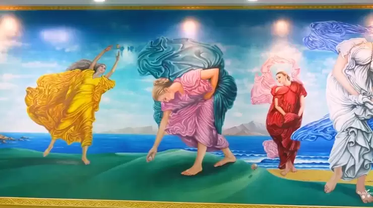 А в основному будинку Камалії панорамні вікна, колекційний антикваріат, скульптури, багато картин.
