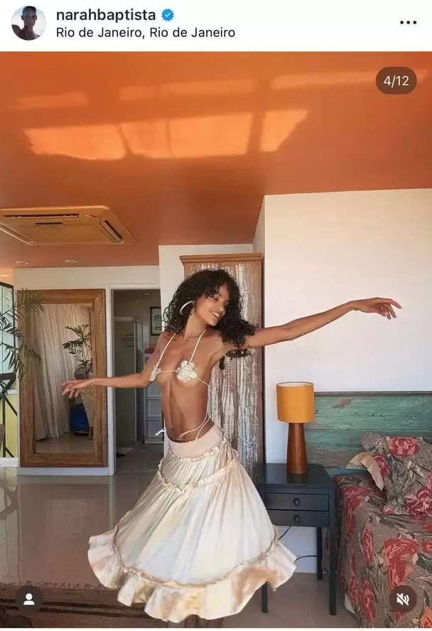 29-річна австралійська модель бразильського походження Нара Баптіста здивувала своїх фоловерів в Instagram новими сміливими фотографіями, на яких вона позувала в топі, який являв собою дві в’язані з бісеру квітки на тонких бретельках, що ледь прикривали її груди.