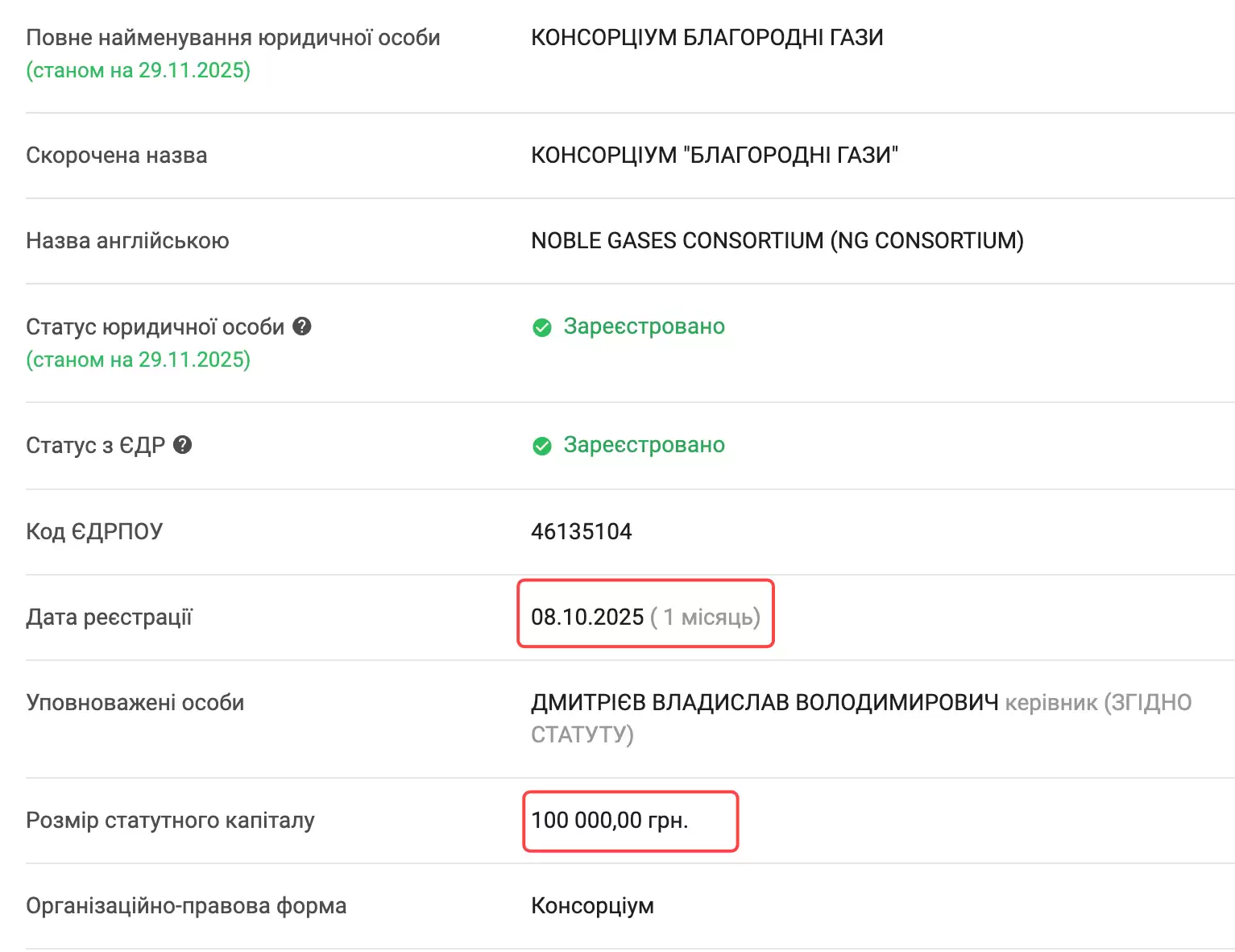Консорціум було створено 8 жовтня 2025 року - лише за три тижні до оголошення тендеру. Жодне із підприємств-учасників консорціуму не має жодного досвіду у виробництві чи реалізації газів, виробництві газового обладнання чи управлінні майном таких масштабів.