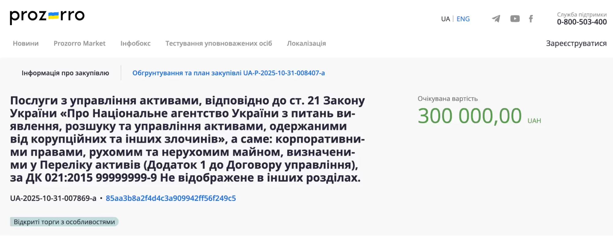На даний момент, згідно з Прозорро, очікується рішення щодо тендеру, але заявку одного з учасників встигли відхилити.