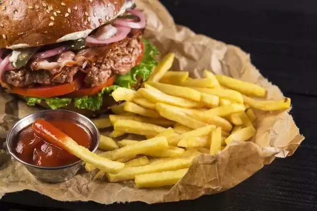 Фастфуд поєднує смажені продукти, рафіноване борошно та цукор, створюючи висококалорійні страви, які негативно впливають на захисні функції організму.