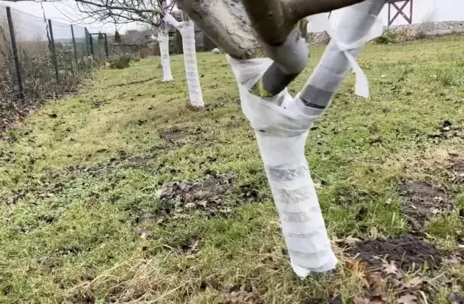 Побілка дерев вважається малоефективною: вапняне покриття швидко осипається, не витримує навіть невеликих опадів і часто не забезпечує достатнього захисту від морозобоїн, а також від гризунів – мишей і зайців. Досвідчені садівники, які втомилися щорічно оновлювати білизну стовбурів, все частіше обирають садовий бинт. Це широка стрічка зі спеціального агроволокна, яка щільно обмотує стовбур і створює надійний бар’єр навколо дерева.