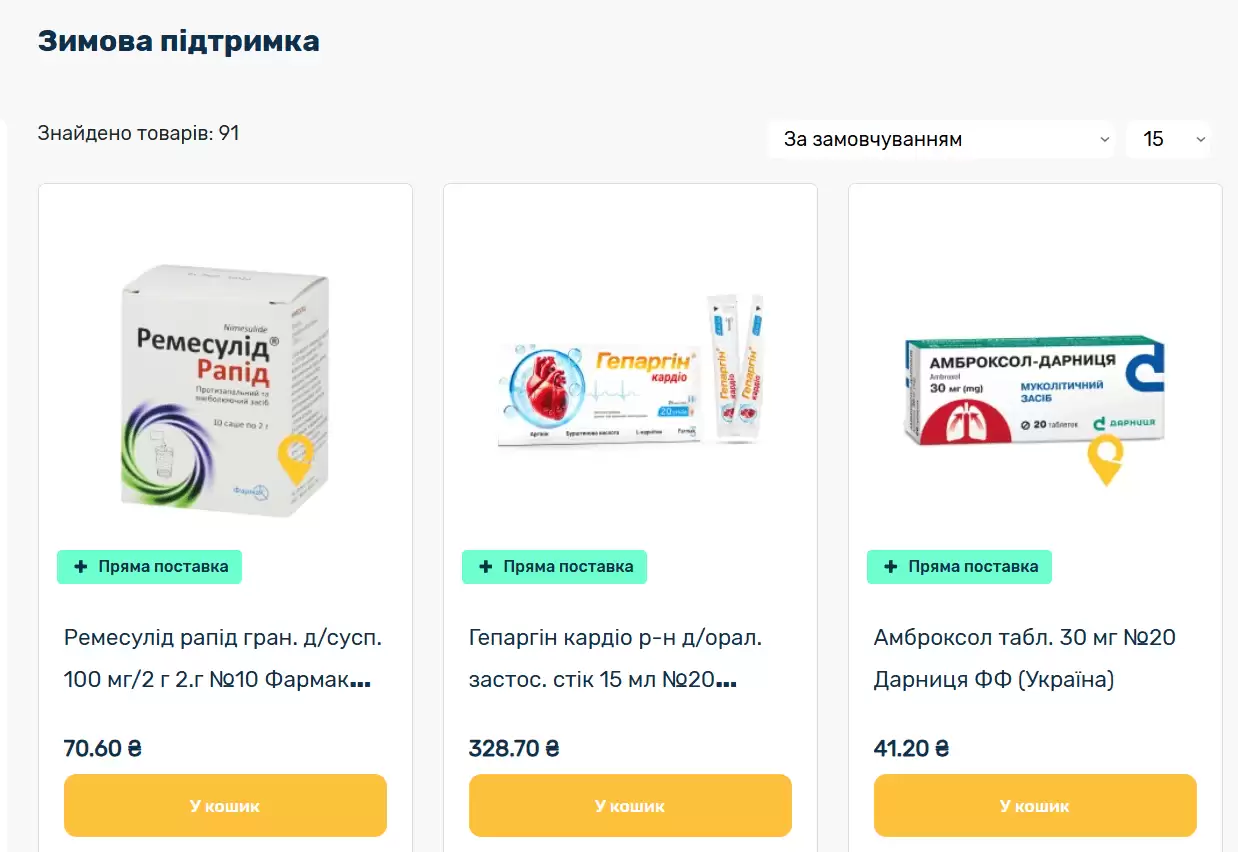 Повний перелік аптек, де приймають оплату Зимовою підтримкою, зазначений у посиланні. До програми долучилася велика кількість мереж. Але на жаль, доступні не будь-які препарати, а лише українського виробництва, які беруть участь у програмі Національний кешбек. Повний перелік включає більше 14 000 препаратів.