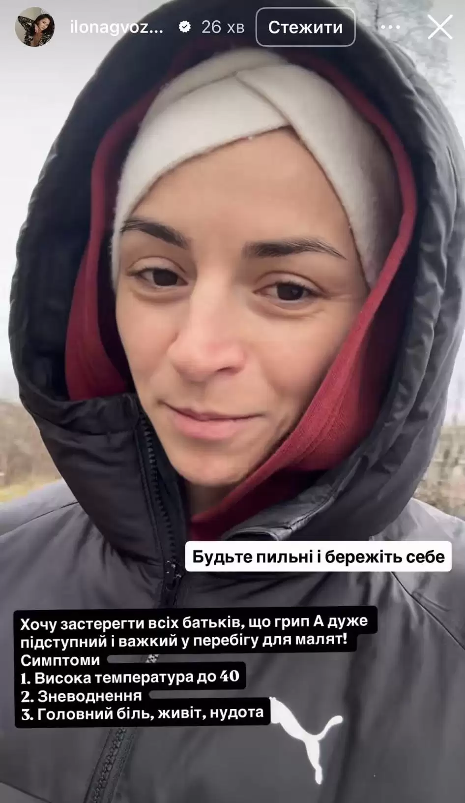 "Якщо чесно, було два дні тому не до сміху, тому що було майже повне зневоднення, температура майже 40 шарашила, це було дуже страшно, і підтвердили все ж таки грип А. Тому всім батькам теж наголошую: слідкуйте за дітками. Особливо ця висока температура...", - зізналася Ілона.