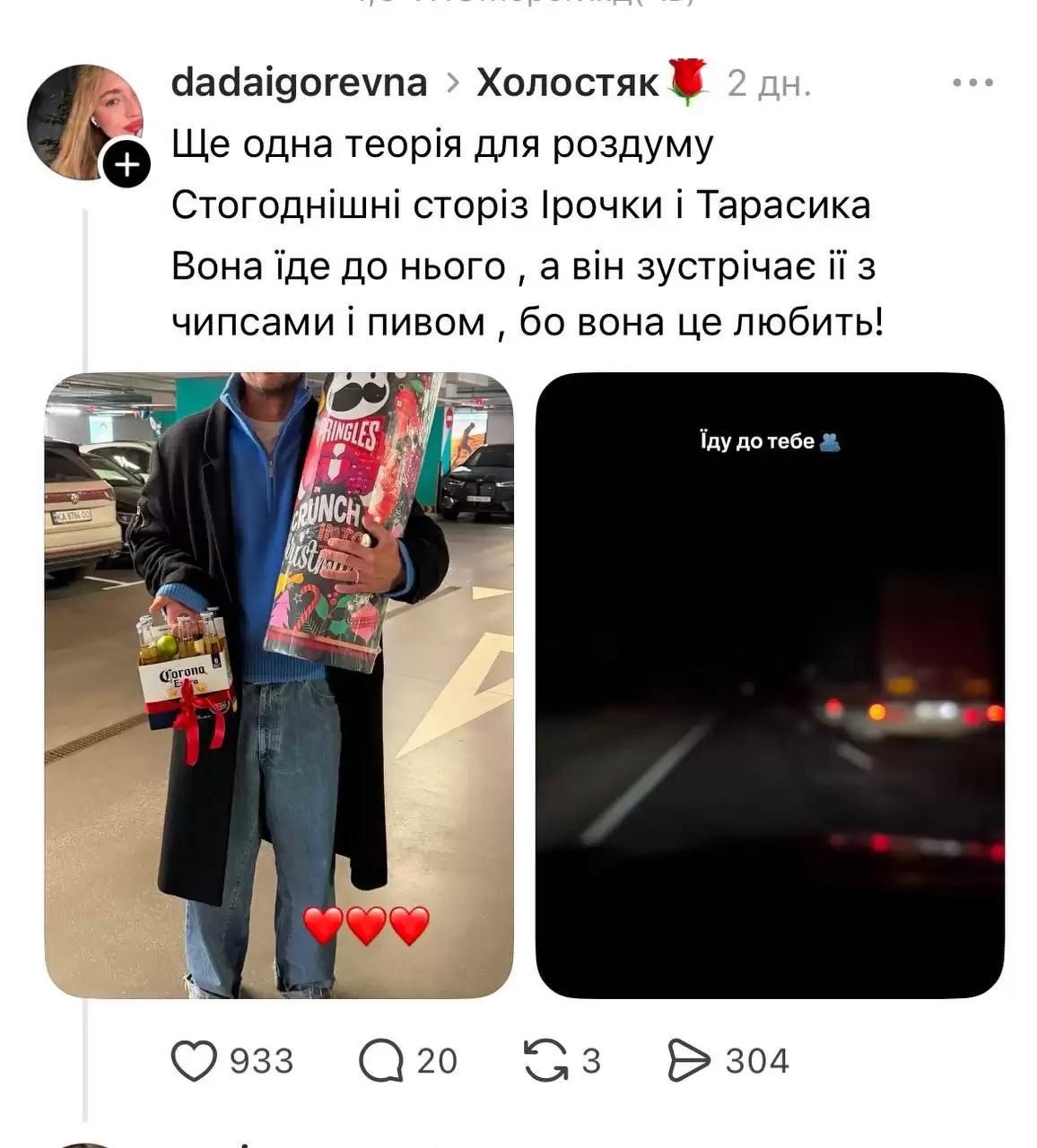 А от у мережі розгорнулося ціле розслідування, до якого ні ГУР, ні ФБР не дотягнути. Наприклад, шанувальники проєкту співставили сторис, які викладали Ірочка та Тарас. І тут дійсно все натякає на те, наче пара разом. Особливо зважаючи на те, що Іра говорила, як вона любить чипси.