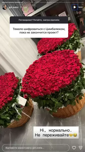 Відповідаючи на пряме запитання одного з користувачів про те, чи важко їй "шифруватися" з Цимбалюком під час виходу романтичного реаліті, Світлана написала: "Ні, нормально. Не переживайте".
