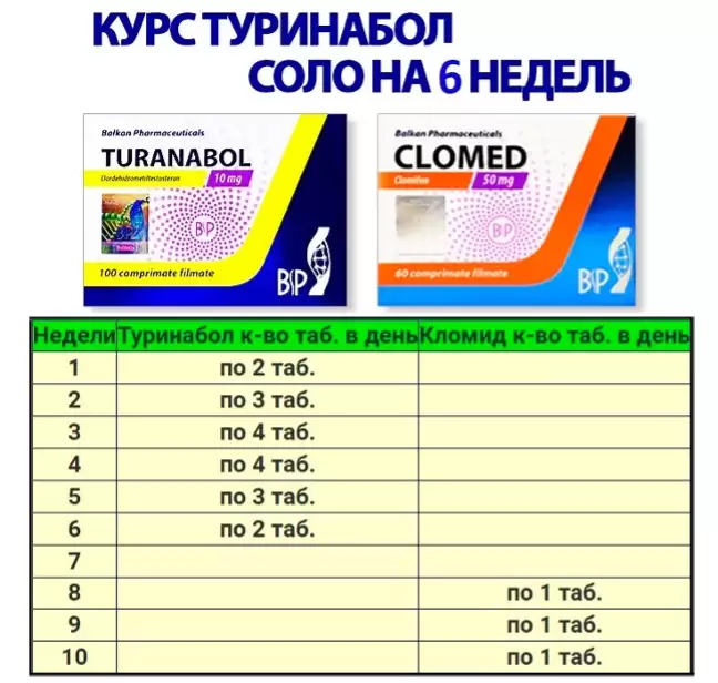 Пример схемы приема Туринабола соло на 6 недель: