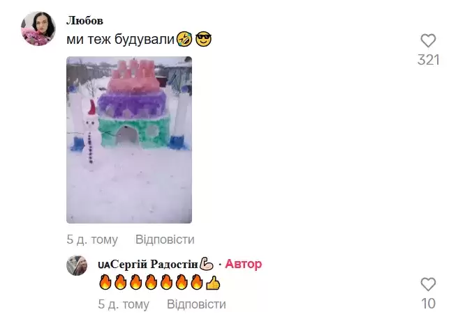 У коментарях висловлюють захват від ідеї, а також діляться фотографіями своїх снігових фортець.