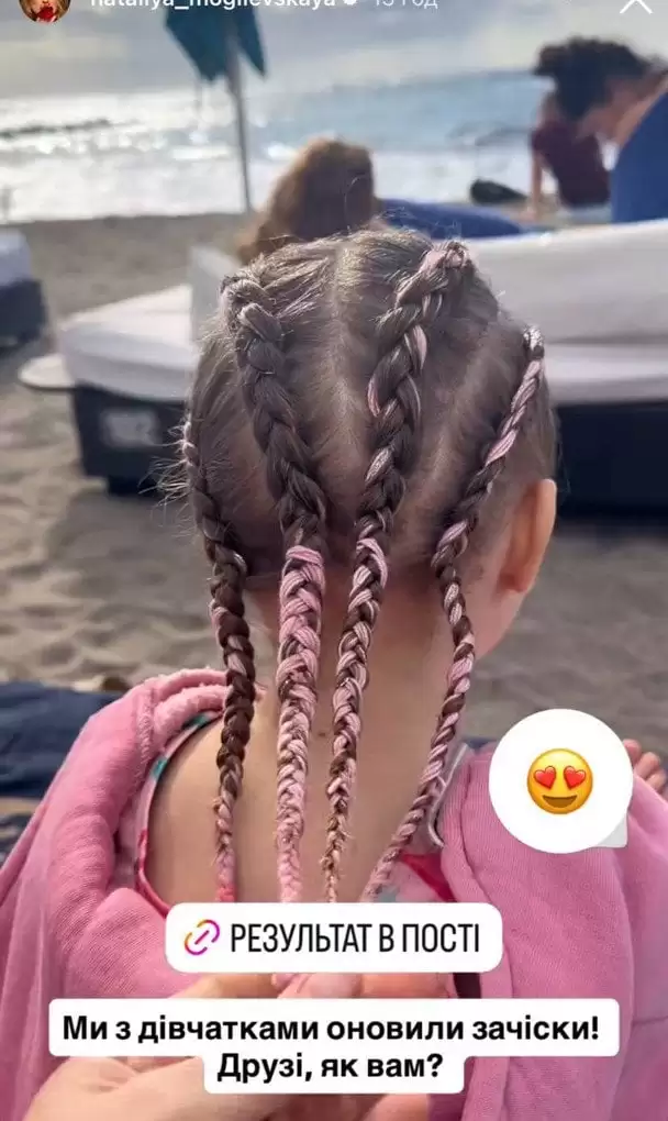 До речі, без змін не залишилась і молодша донька артистки. Наталія Могилевська наразі перебуває на відпочинку на острові Тенерифе. А там часто місцеві пропонують перукарські послуги, аби заплести популярні косички. Так от, і в маленької Соні тепер яскрава зачіска. Мішель, до речі, теж заплели косички.