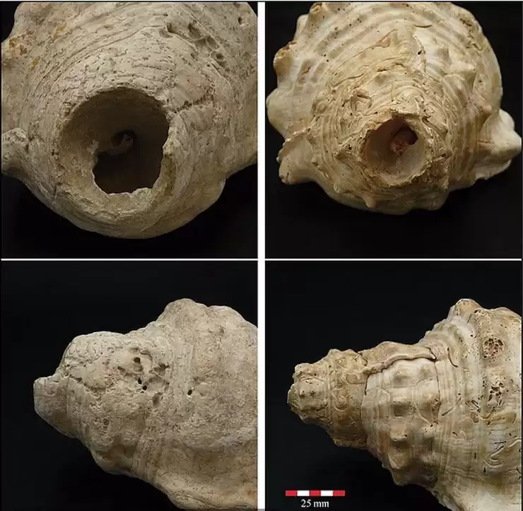 На мушлях також були виявлені пошкодження від черв'яків і морських губок — це вказує на те, що їх збирали мертвими з дна моря. Простими словами, черепашки були відібрані стародавніми людьми через їхні музичні властивості, а зовсім не для їжі.