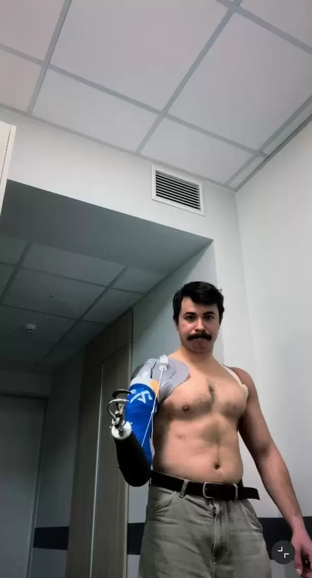 "Початки! Не лякайтесь, це механічний протез з гаком, після нього буде біонічний з кистю. Побачимо, як це все працюватиме в побуті", — поділився з підписниками Грубич-молодший.