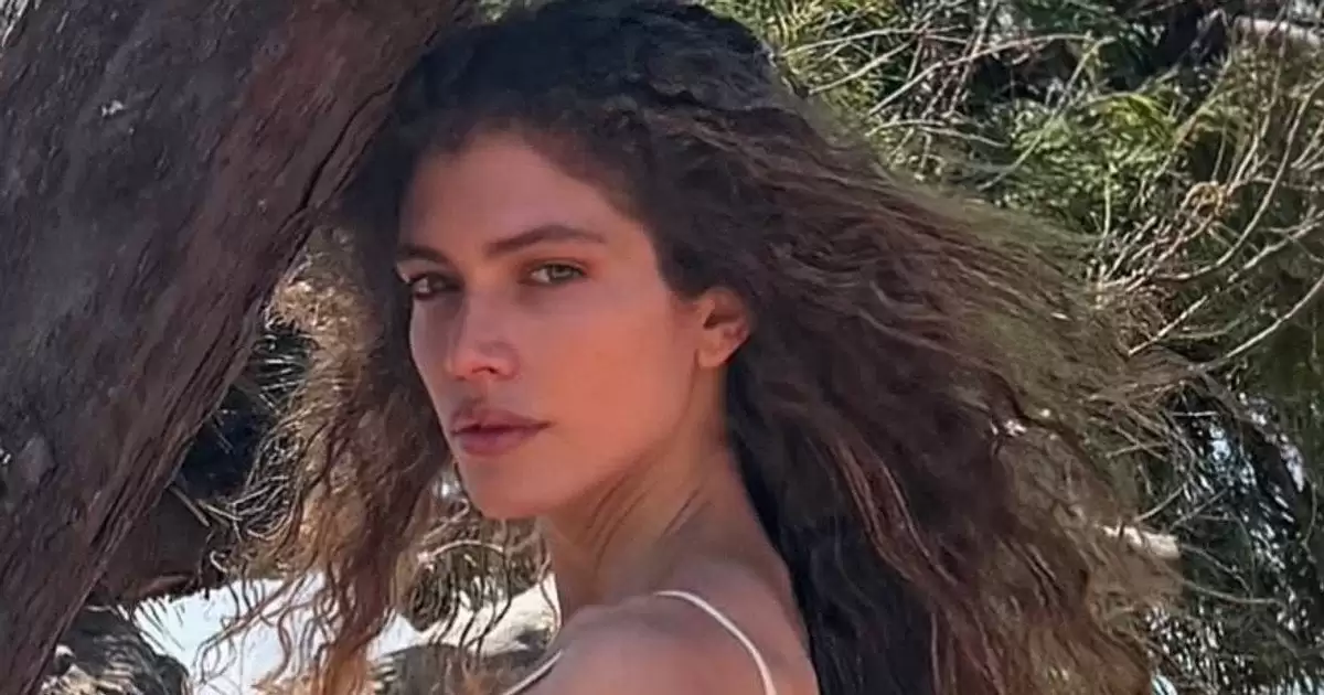 На нових знімках вона позує в молочному бікіні. Модель зображена біля старого розлогого кипариса. Її волосся розпущене, а на обличчі немає макіяжу.