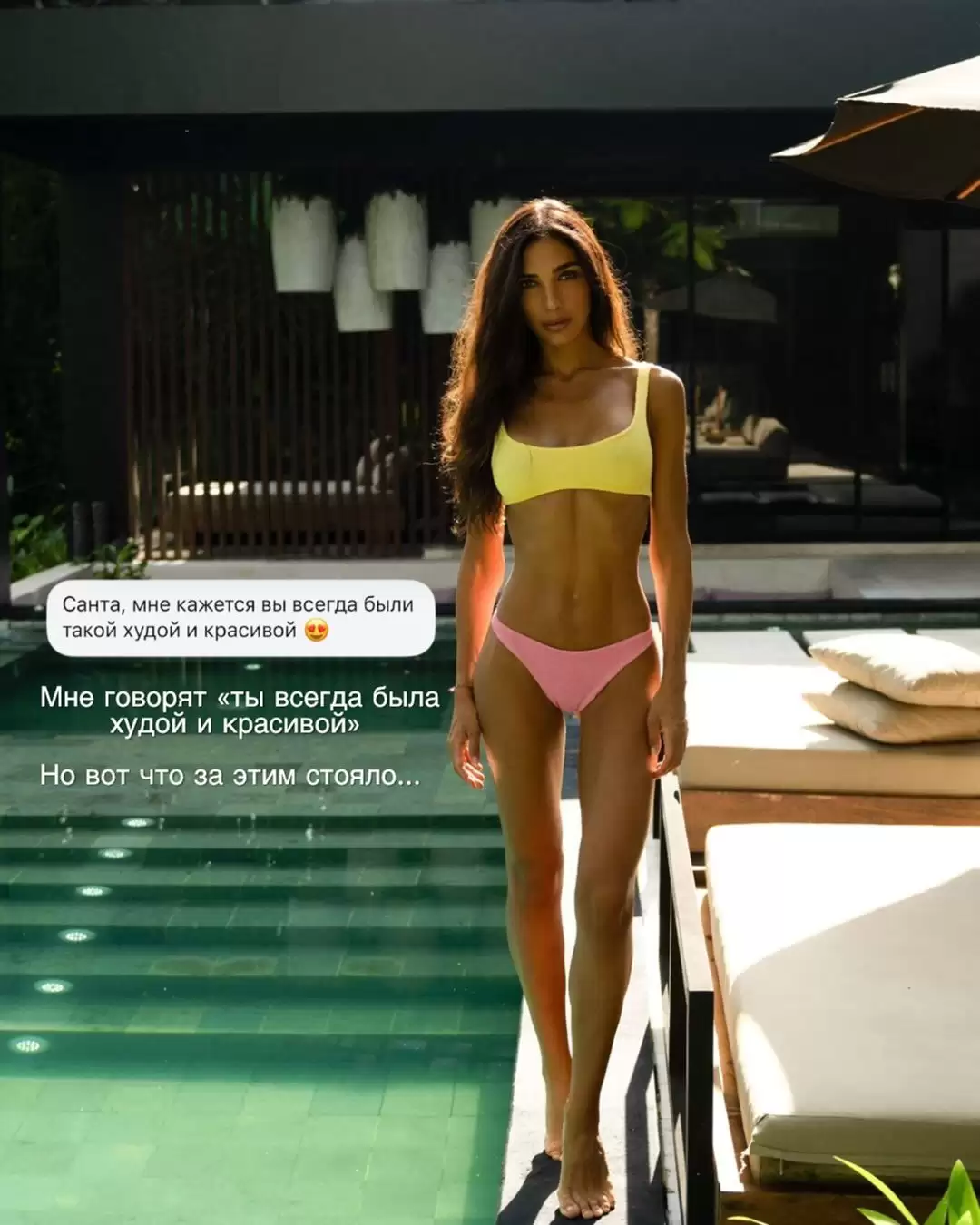 Інфлуенсерка Санта Дімопулос, яка незмінно збирає серед підписників компліменти своїй фігурі, вирішила нагадати про те, що її шлях до такої форми і таких стосунків з власним тілом був довгим та непростим.