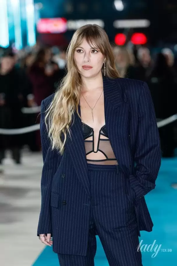 На червоній доріжці акторка з’явилася у діловому темно-синьому костюмі в білу смужку, який складався з двобортного жакета оверсайз і штанів.