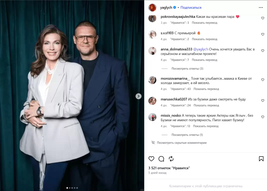 Зазначимо, що Антоніна Паперна закрила свій Інстаграм від переглядів в Україні ще 2022 році. Мабуть, у такий спосіб актриса вирішила відсторонитися від подібних коментарів.