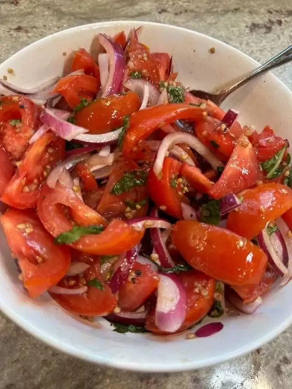 У мережі опублікували зроблені влітку фото салатів зі свіжих помідорів і цибулі.