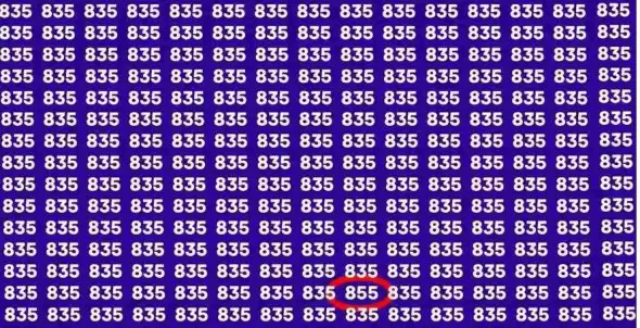 Нова цифрова головоломка пропонує перевірити свій IQ і спостережливість завдяки числу 855, яке треба знайти серед великої кількості чисел 835. На це завдання виділили лише 11 секунд.
