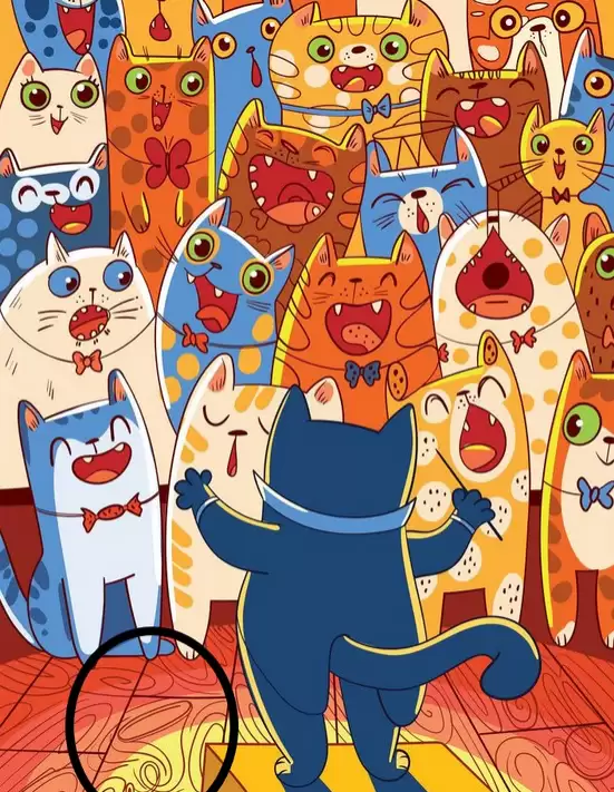 Сьогодні пропонуємо вам одну з головоломок, яка є цікавою, а також випробовує ваші навички. Ви помітите групу котів, які співають у хорі.