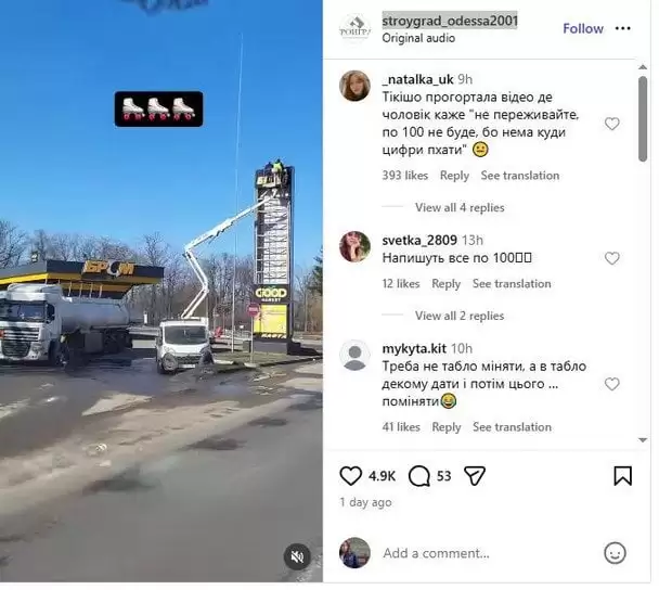 У деяких відео користувачі навіть жартома вимірюють ширину табло, щоб перевірити, чи помістяться там цифри понад 100 грн за літр.