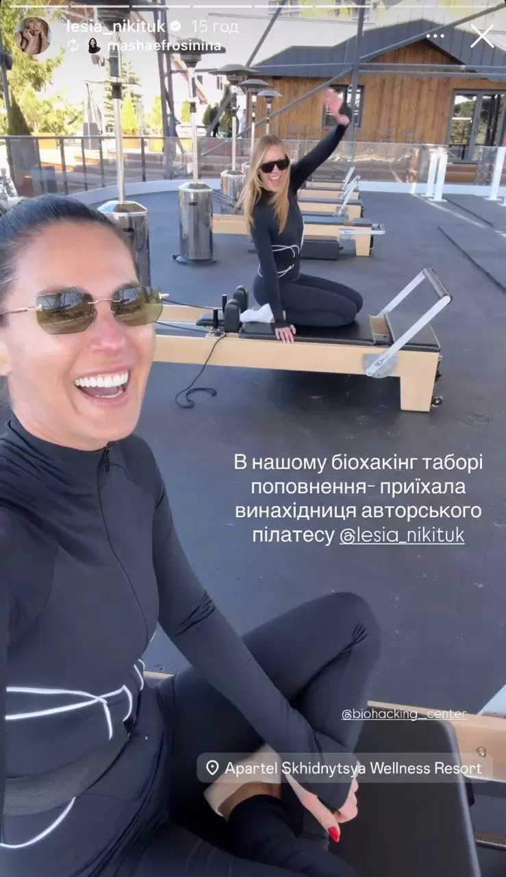 Так, зірки разом провели ранкове тренування. І судячи з відео, атмосфера там була легка й весела. Так, Єфросиніна підколює Нікітюк, що та винайшла новий вид тренування – зірка показує, як Леся фотографується замість того, аби займатися.